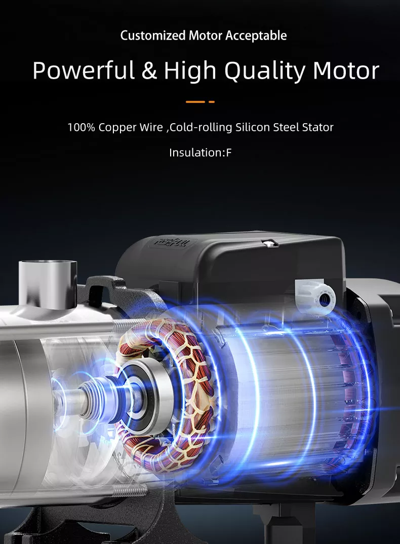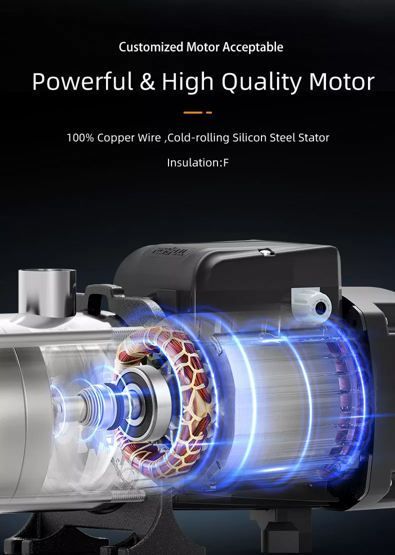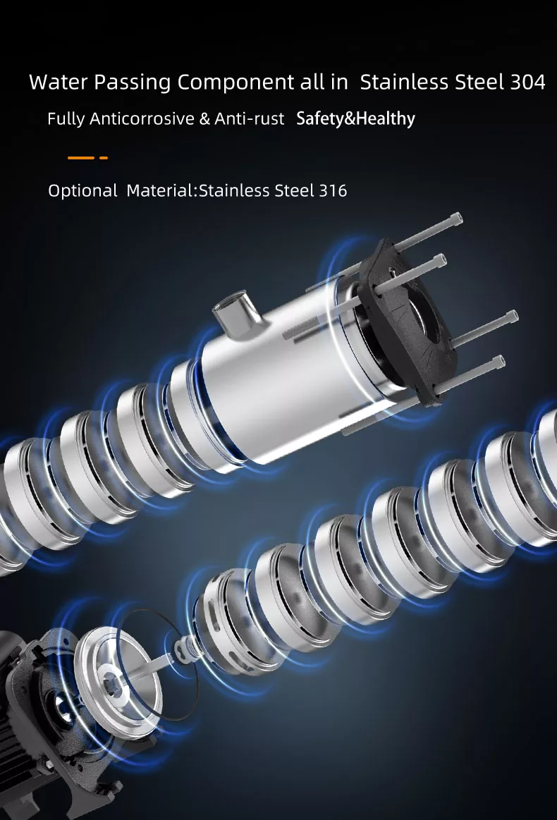 4. Efficienza energetica: con il suo design avanzato e la tecnologia all'avanguardia, la nostra pompa multistadio ottimizza l'utilizzo dell'energia, aiutandoti a ridurre i costi operativi mantenendo le massime prestazioni.