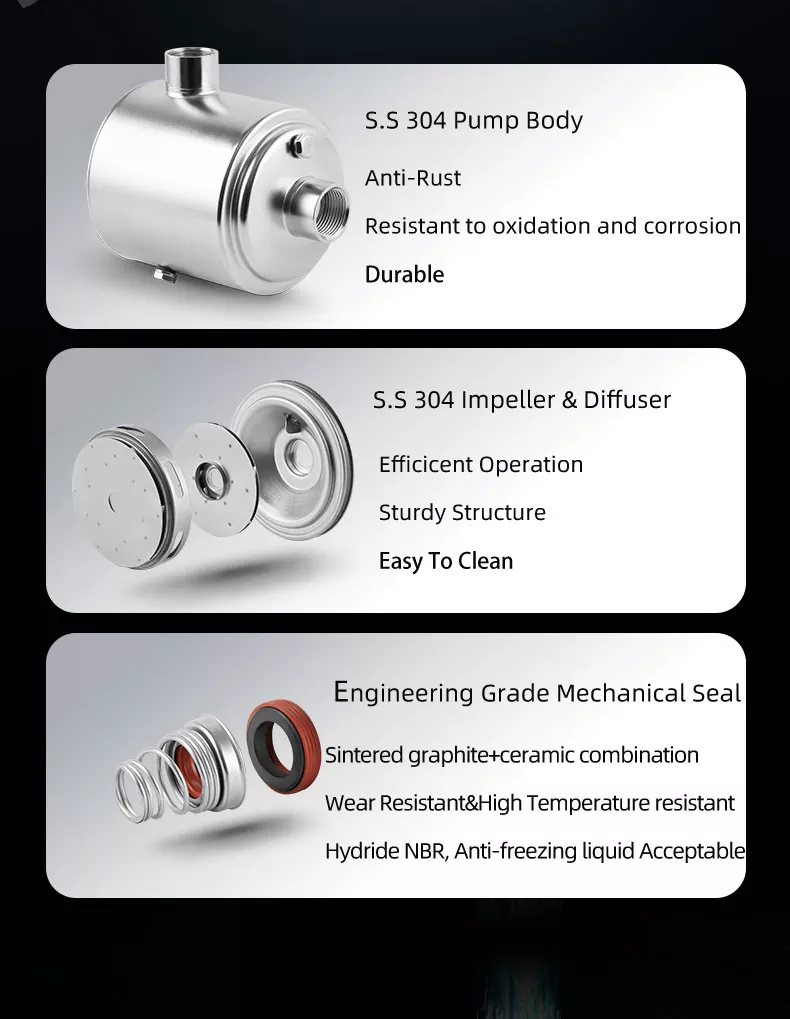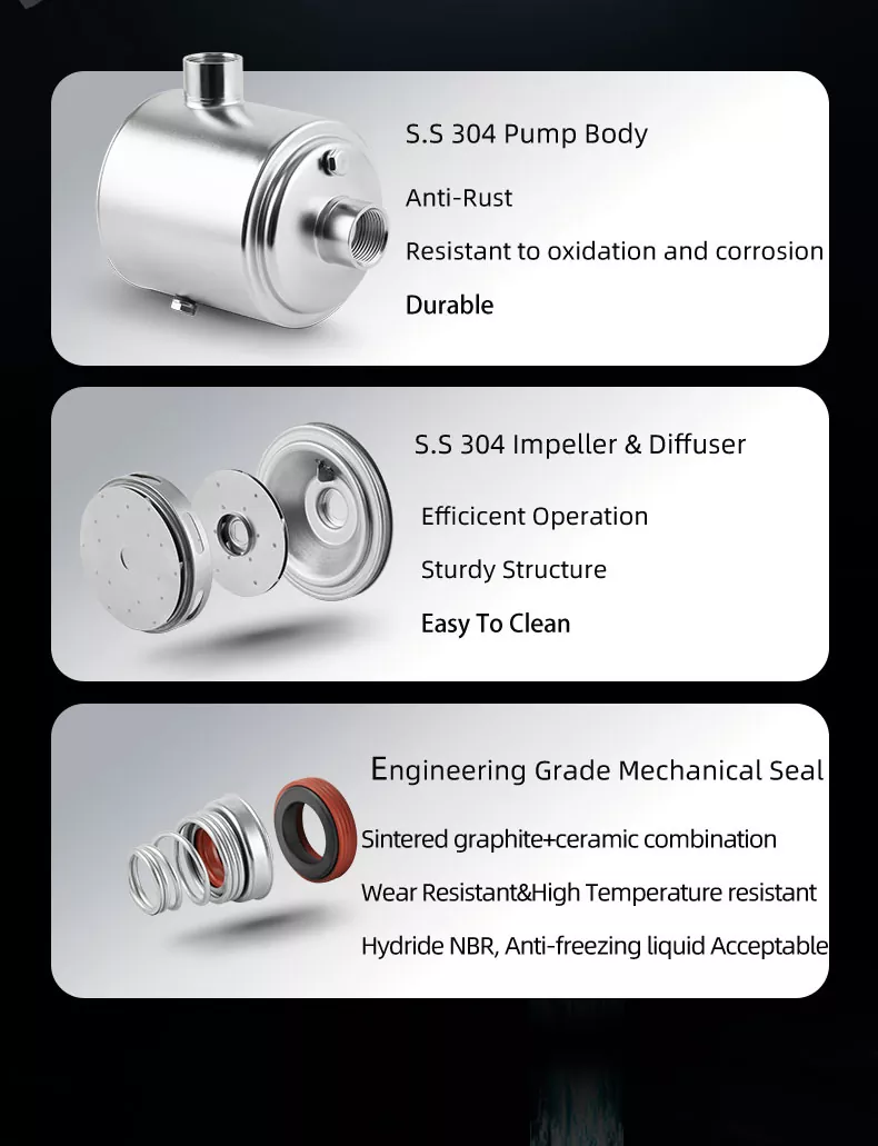 3. Applicazioni versatili: se è necessario aumentare la pressione dell'acqua negli edifici, nei sistemi di irrigazione o nei processi industriali, questa pompa è abbastanza versatile da soddisfare con facilità un'ampia gamma di esigenze.